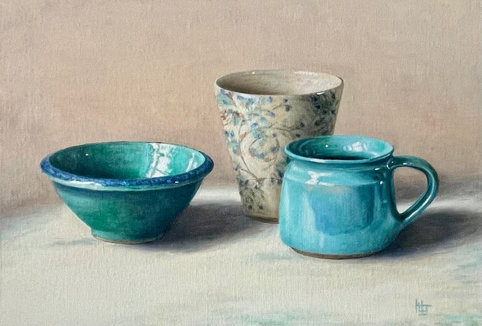 Henrietta draws inspiration from her love of nature and the fascinating scope of still life whether it be a simple object or the beauty found in ripe fruit. Her work is classical in style and her choice of light and tone calm in quality. She chooses to matt varnish her work, so that while drawing on centuries of tradition in oil painting, the finished piece has a contemporary feel enabling her work to sit well in any interior setting.